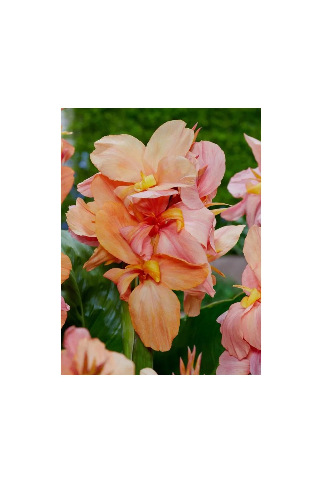 – přináší do letní výsadby výrazný tropický nádech s teplými meruňkovými květy s jemnými broskvovými tóny, které se drží nad bujným, pádlovitým listím. Výška 70-90 cm.