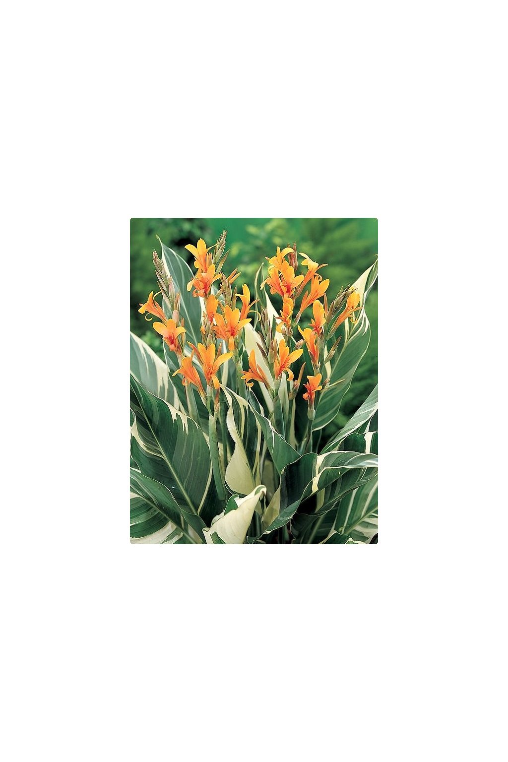 – atraktivní, zelené listy jsou nepravidelně krémově skvrnité. Květy jsou červeně oranžové. Výška okolo 1 m.