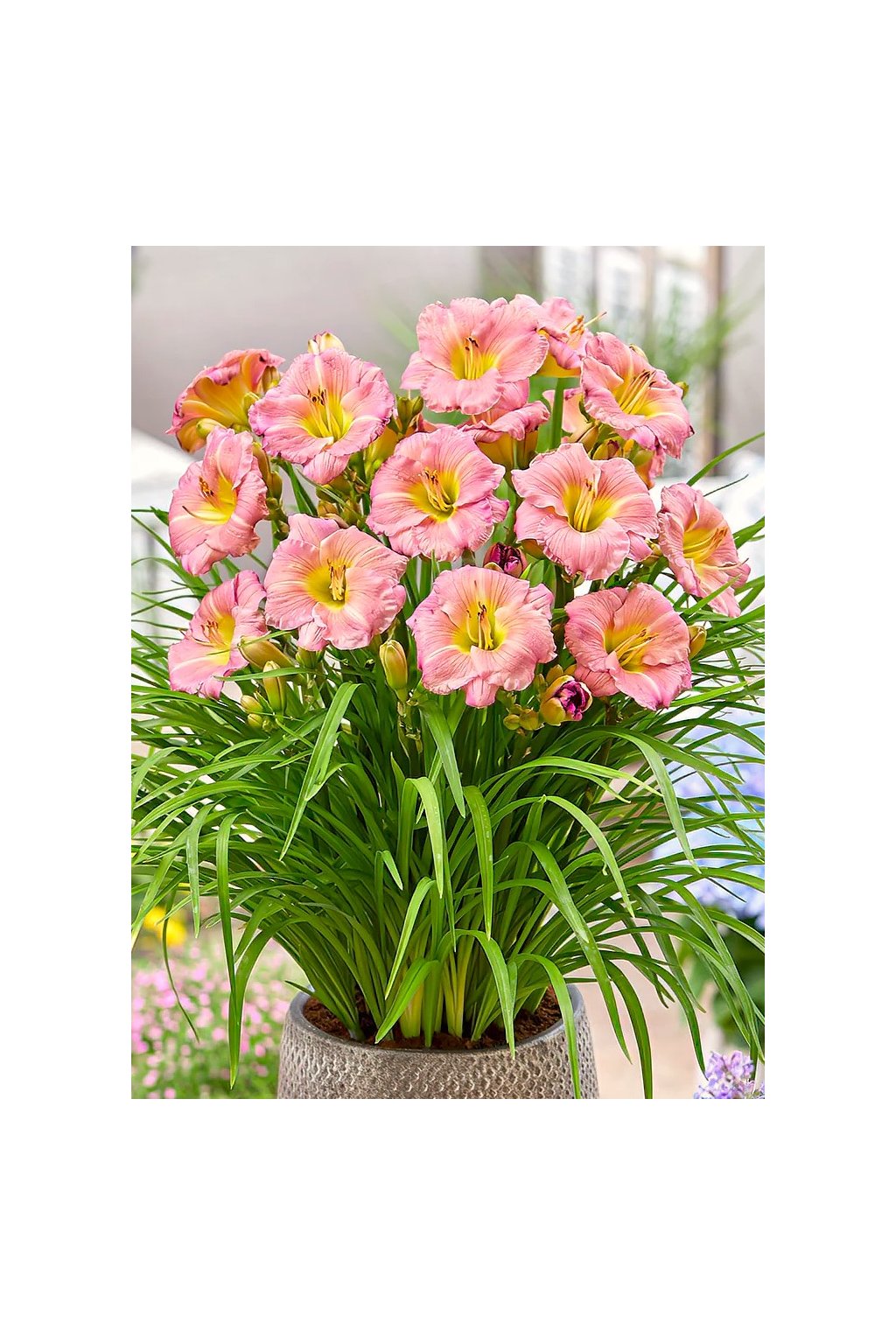 – elegantní ledově bílé květy s jemně levandulově namodralým odstínem. Vytvářejí chladivý a osvěžující zahradní efekt. Kvete hojně v polovině sezóny s možností opakovaného kvetení až do pozdního léta. Výška 50 cm, Ø květů 7-8 cm.