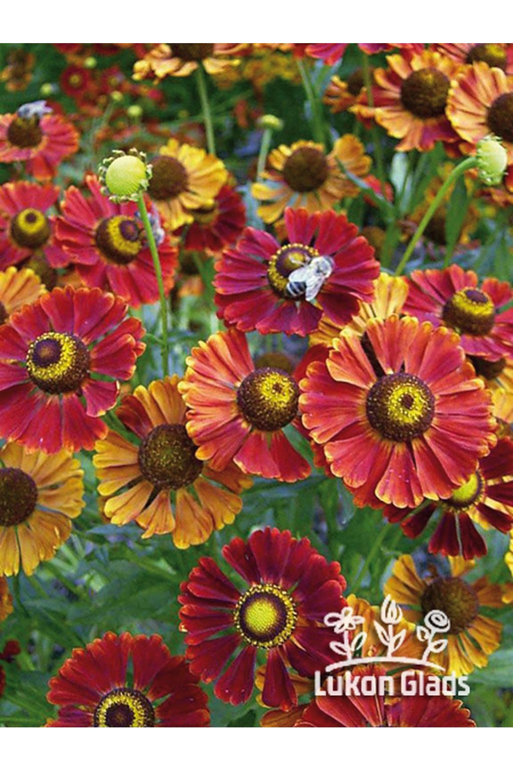 – rozvětvené stonky nesou podlouhlé až kopinaté, tmavě zelené listy v létě zakončené tmavě červenými květy s červenohnědými středy, později se vybarvují až do zlatě žluté. Výška 60 cm.Doplňkové parametry
