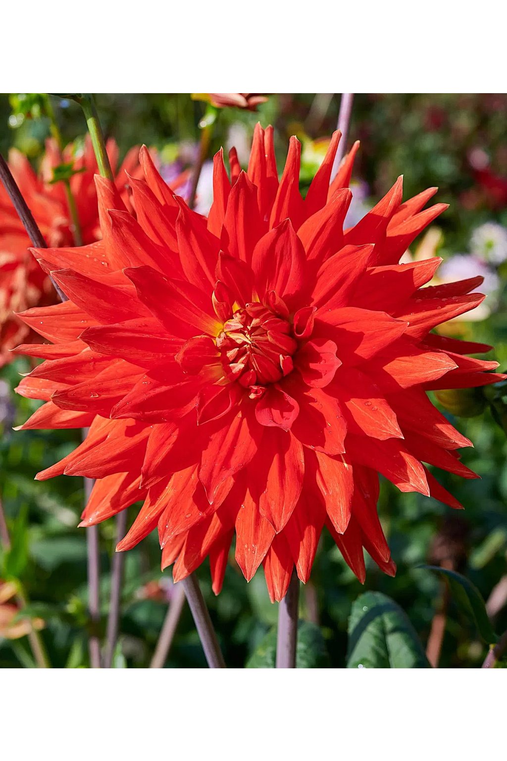 – velké květy mají zářivý oranžovočervený odstín se žlutými záblesky uprostřed a na špičkách okvětních lístků. Robustní tmavě fialové stonky podpírají tyto dynamické květy, které jsou čtyřbarevným doplňkem záhonů a kytic. Výška až 130 cm, Ø 20-25 cm.