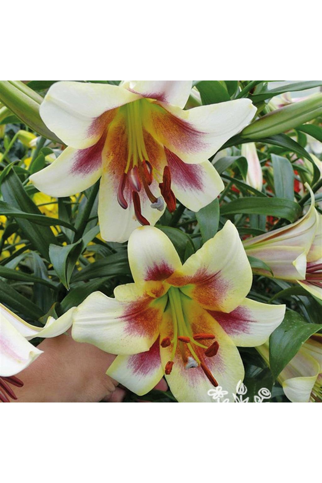 – jemná kombinace pěkných krémově bílých okvětních plátků s velkým kaštanově vínovým středem a nažloutlou infúzí. V hrdle je zelená hvězda. Květy mají trubkovitý tvar, výška lodyh až 150 cm. Nádherná novinka Dr. Griesbacha 2015!Doplňkové parametry