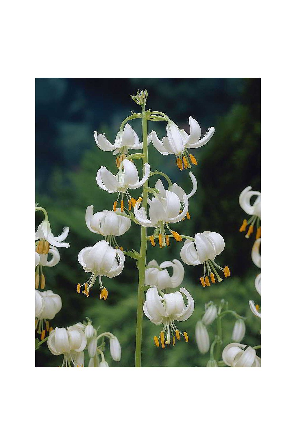 – má charakteristické květy ve tvaru turecké čepice, které se otevírají v čistě sněhobílé barvě s okvětními lístky zakřivenými dozadu a odhalují nádherné oranžové tyčinky. Elegantní a jemně vonící, vyniká mezi hybridními odrůdami lilií. Snadno se pěstuje, dosahuje výšky 80 cm a má štíhlé stonky, na kterých kvete až 30 květů. Velikost cibulek: 18/20.