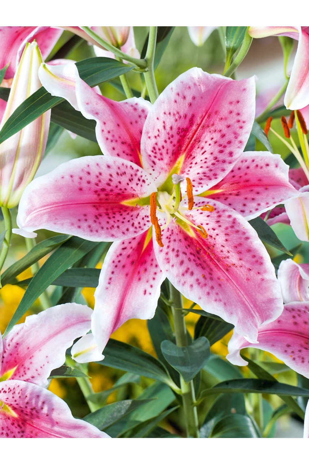 - vyznačuje se velkými, výrazně růžovými květy s tmavším středovým pruhem, jemným bílým lemem a kontrastními tečkami. Květy jsou obrácené vzhůru a silně, sladce voní, díky čemuž je tato lilie nepřehlédnutelná v zahradě i ve váze. Dorůstá výšky přibližně 90–110 cm a kvete v letních měsících. Preferuje slunné až polostinné stanoviště a propustnou, výživnou půdu s dostatkem vláhy.