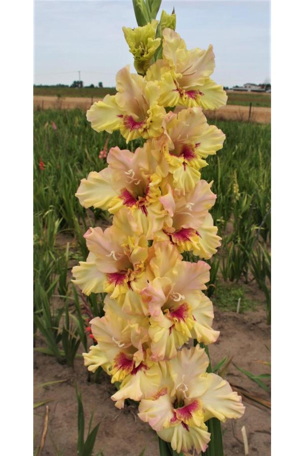 – (Koníček 2022) 421 M. Světle oranžový s lososovým přelivem, v hrdle je výrazné karmínové oko, spodní petály jsou přelity zlatě žlutou barvou. Tato parádní odrůda vyniká krásně tvarovanými, silně zvlněnými a voskovitými květy. Rostlina vytváří dvouřadý klas s dlouhým stonkem s 21-23 poupaty a současně nakvétá 8-11 velmi trvanlivých květů. Ideální tržní odrůda.