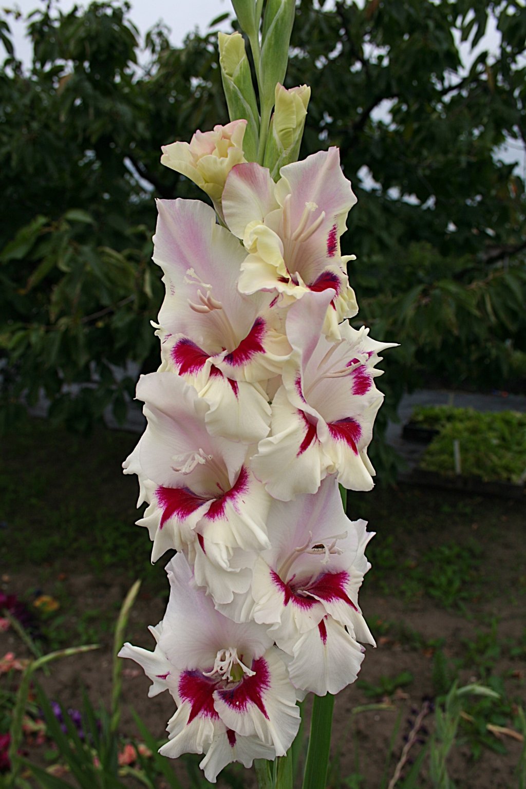– nádherný velkokvětý mečík s jemnými bílými a růžovými květy, který dodává záhonům, okrajům a dekorativním aranžmá jas a eleganci. Vysoké stonky a harmonické květenství předurčují tuto odrůdu k hromadným výsadbám, profesionálním krajinářským úpravám a řezaným květinám. Rostlina dorůstá výšky až 150 cm a vytváří velké květy o průměru 10–15 cm, které kvetou od července do září.