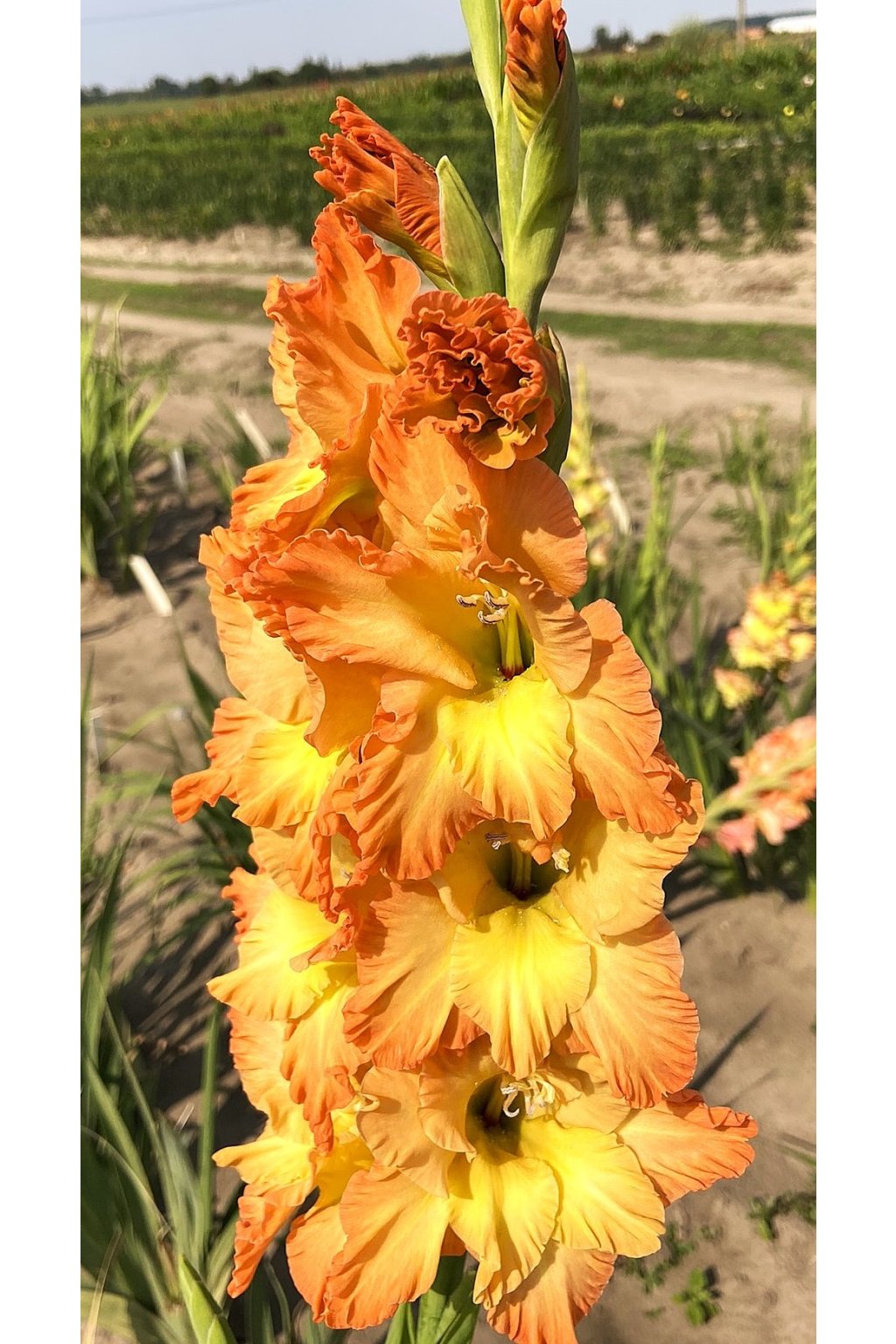 - (Šaran/Koníček 2026) 425 LM (WHITE LION x s.56/14). Vytváří pravidelné dvouřadé klasy s lososově oranžovými květy, které mají na spodních petálech nádherné zlatě žluté oko. Květy jsou voskově tuhé, zvlněné, mají čtvercovitý tvar. Otevírá 8-10 květů na klase s 22-24 poupaty. Skvělá výstavní novinka. Semenáč č. 29/19.
