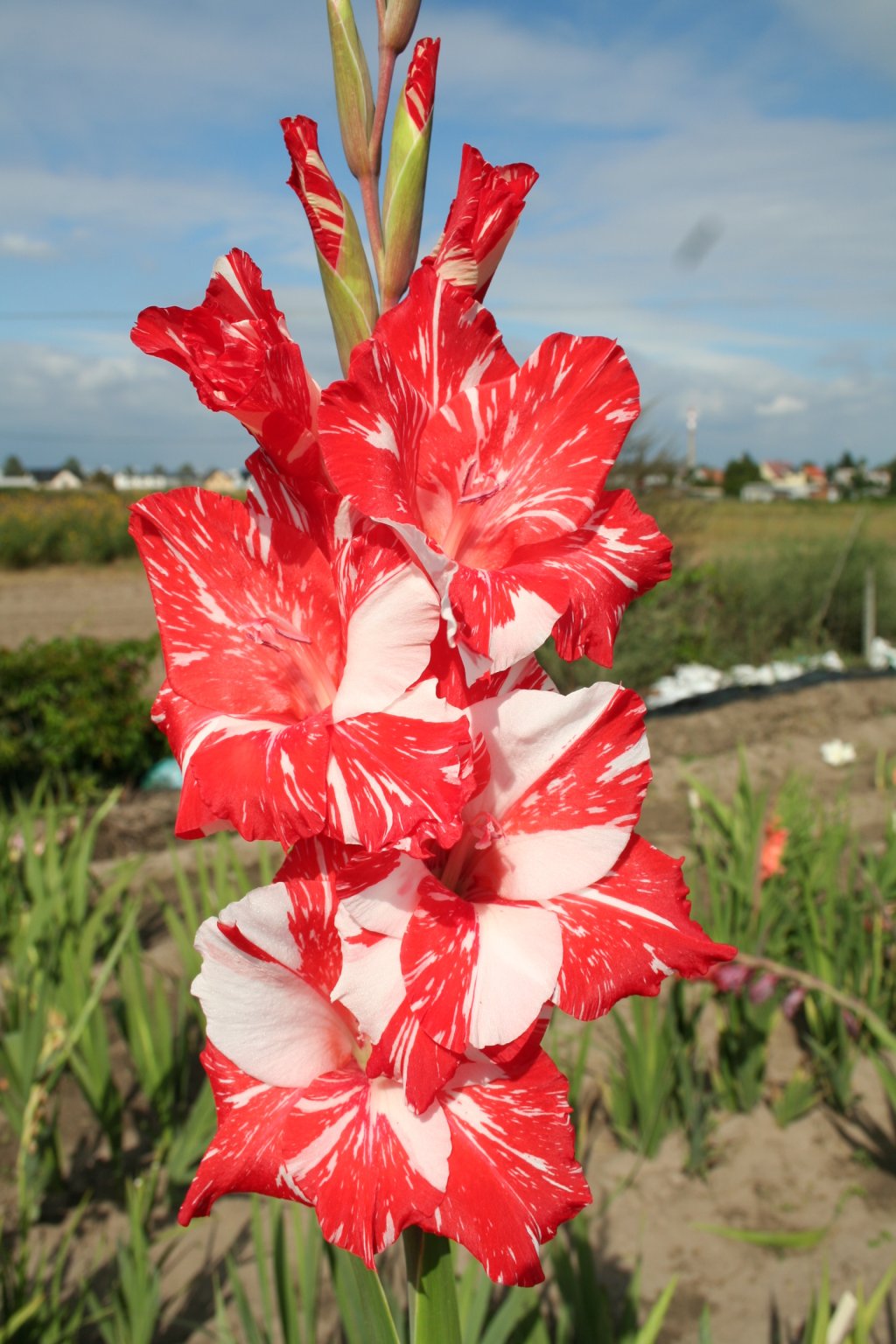 - rudě červený základ je překrýván sítí nepravidelných bílých skvrn na každém květu. Tyto skvrny z ní dělají velmi atraktivní gladiolu. Každý kdo jí uvidí na Vaší zahrádce nebo ve váze u Vás v bytě, jí také bude chtít. Otevírá 7 až 8 květů na klase s 22 až 24 poupaty. Rarita!Doplňkové parametry
