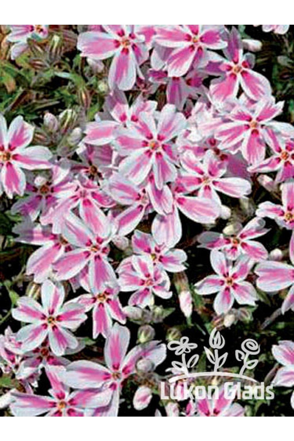 – jeden z nejoblíbenějších skalkových „floxů“ s nádherně pinkově růžově pruhovanými bílými květy. Výška 15 cm, výhodná odrůda i pro pěstování v květináčích.
