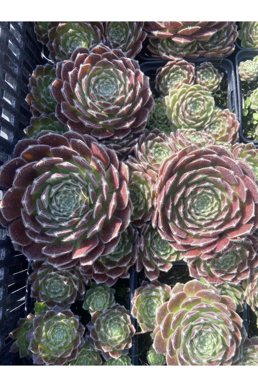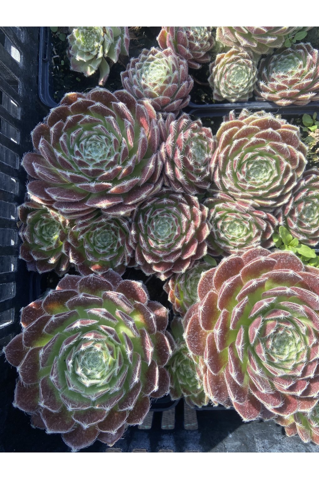 - nádherný kultivar s velkými, červenými růžicemi a s bílou pavučinou ve středu růžice. V létě se mírně zazelená.
